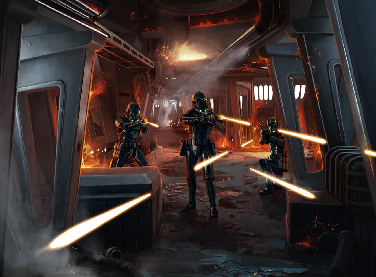 O primeiro uso conhecido dos troopers da morte foi em 13 ABY eles serviram ao Diretor Orson Krennic na sua missão para achar, e mais tarde, capturar Galen Erso e continuariam a proteger o Diretor até sua morte em Scarif no começo da Guerra Civil Galáctica.