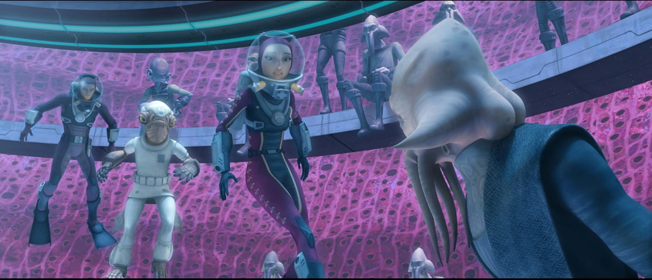 Logo, os Quarren retornam, mas com uma terrível arma secreta: Medusas Hidroide, águas-vivas gigantes ciborgues com tentáculos eletrificados, que provam serem resistentes as armas dos Mon Cala. Superados e com seus números dizimados, as forças da República são obrigadas a retirar-se para um conjunto de cavernas perto da cidade. Nesse meio tempo, o Conde Dookan contacta Tamson ordenando prender o povo Mon Cala capturada para trabalharem em campos de internamento, efetivamente reduzindo-os a escravidão, um anúncio que assusta Ri, e o leva a protestar, sem sucesso. Nas cavernas, Lee-Char começa a se desesperar com a situação e sua própria inexperiência, mas Ackbar e Ahsoka fazem o seu melhor para encorajá-lo, lembrando-o que um verdadeiro líder sabe quando recuar, assim como quando atacar. Este último conselho convence Lee-Char que ainda há esperança na batalha em curso.