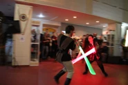Оби Вана Кеноби. Они успели на собственно вступление и демонстрационные поединки на световых мечах школы «Саберфайтинг Арт».
