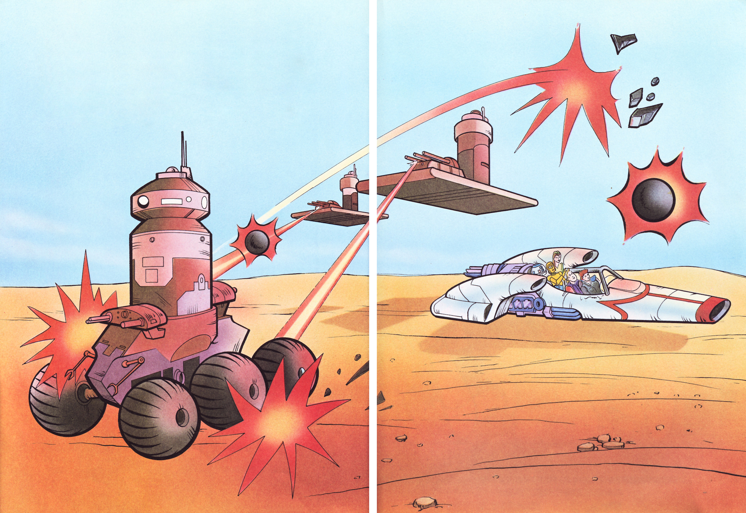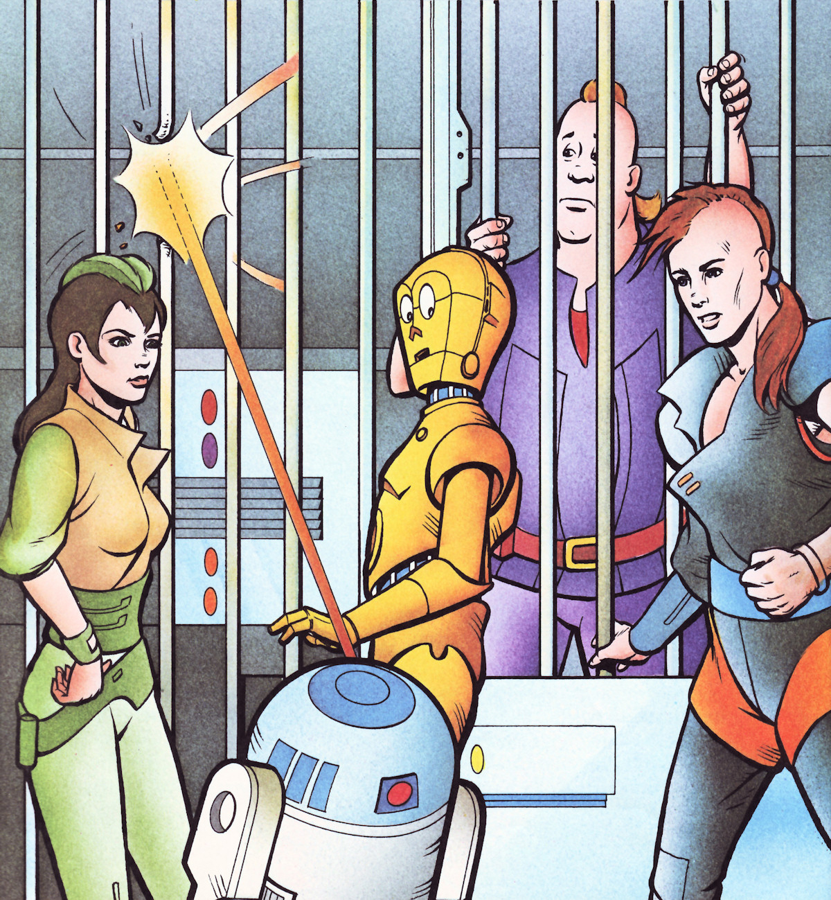 Зловещие космические гангстеры схватили друга дроидов Джорда. Дело усугубляет то, это означает, что они пропустят большую межпланетную гонку, проходящую на следующий день! Окажется ли «Белая ведьма» — сверхбыстрый лендспидер Джорда — достаточно быстрым, чтобы помочь дроидам спасти своих друзей?