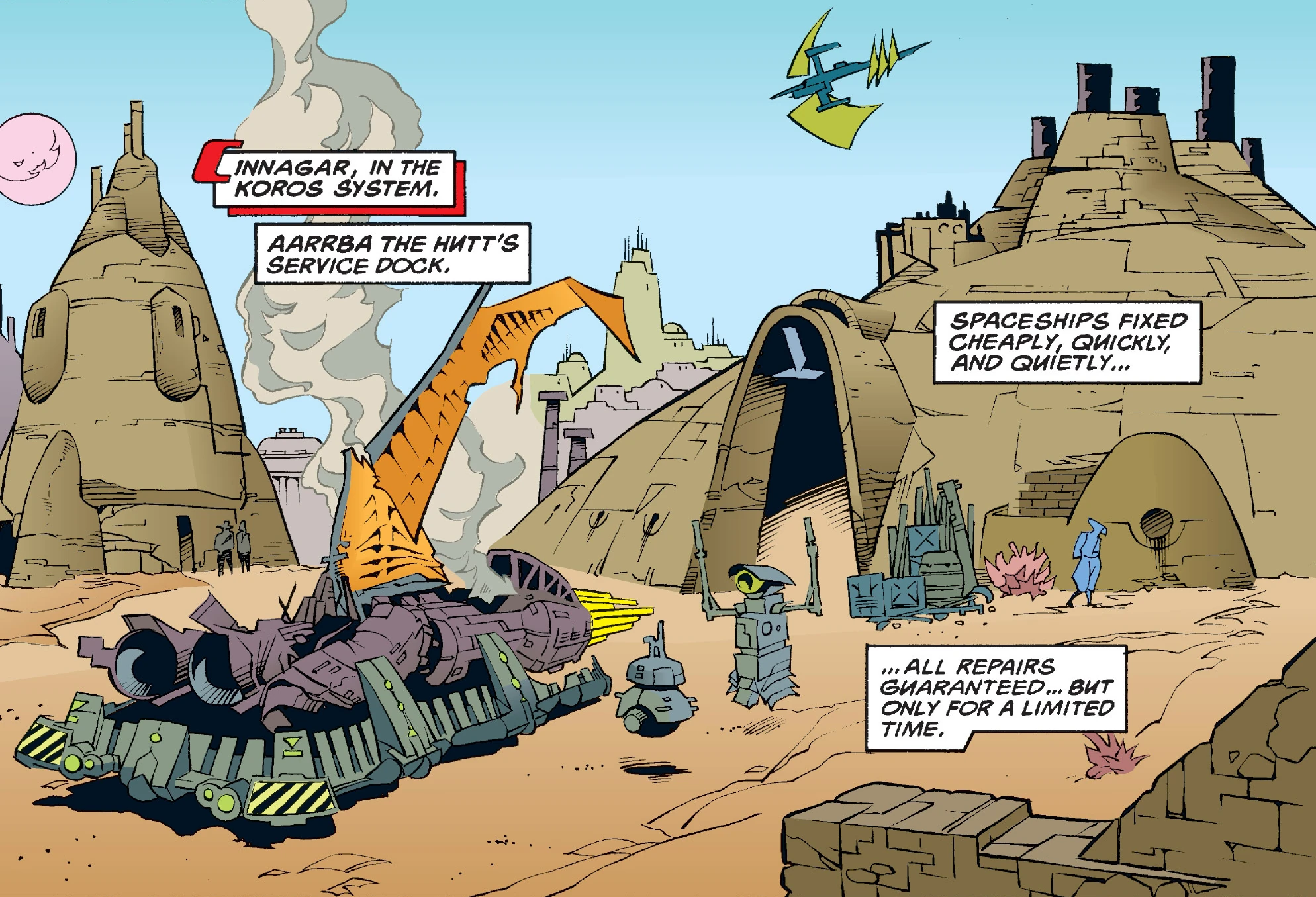 В итоге они были вынуждены поселиться в Циннагаре. Возвращаясь к Большому Коросу из другого путешествия, они умоляли Ааррбу отремонтировать их корабль, но дела хатта в это время шли неладно из-за того, что люди воровали его запасы. Для борьбы с воровством Ааррба установил новую систему безопасности, но ему не хватало кредитов. Хатт отказался возвращать корабль Дарагонам до получения платы за ремонт. Между тем, команда хатта вновь отремонтировала судно. Гэв сказал, что Гильдия гиперпространственных навигаторов зафиксировала их последний маршрут, а Ааррба заметил, что этот маршрут опасен и что немногие станут им пользоваться. Тем не менее, Гэв вернулся с известием, что торговецвец лорд Сск Каорр уже воспользовался новым торговым маршрутом и что они получат премию от гильдии. Несмотря на эту новость, Ааррба все-таки не вернул судно, пока Дарагоны не заплатили ему[3].