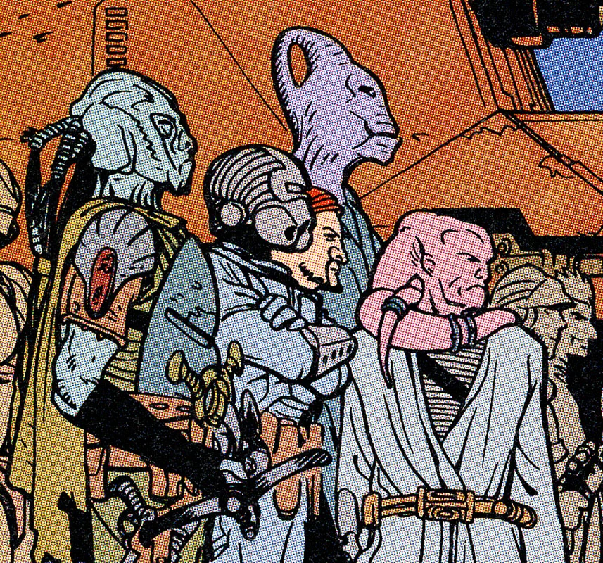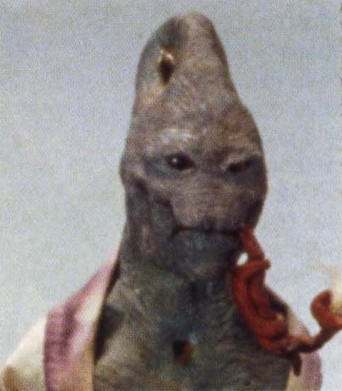 Один из представителей расы должен был появиться во Дворце Джаббы в «Возвращении джедая», однако сцену с ним вырезали из финальной версии фильма. Бюст персонажа этой расы был разработан и изготовлен. Он получил прозвище «Дырка в голове»[5]. Впервые представитель этой расы был изображён в комиксе «Последний приказ», после того как расы была определена в справочнике Путеводитель по Галактике, выпуск 12: Инородцы — друзья и враги».