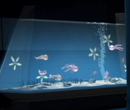 Аквариум (англ. Aquarium, fish tank, fishbowl) — прозрачный контейнер, наполненный водой, в котором находились живые рыбы или другие водные существа или растения. Аквариумы могли использоваться в качестве выставочного оборудования, либо личного украшения интерьера. Зачастую аквариумы изготавливали из панелей прозрачной стали и имели множество разных форм, наиболее распространёнными из которых были кубовидная[1] и шарообразная[2].