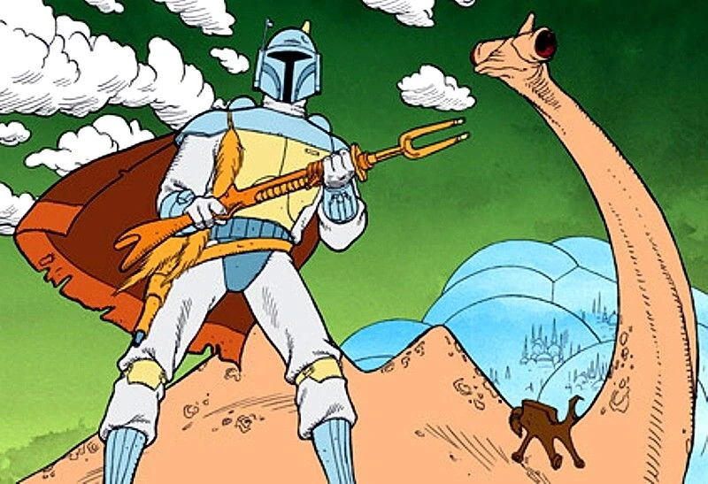 Амбанская снайперская винтовка восходит своим дизайном к оружиюБобы Фетта в анимационном сегменте «Праздничного спецвыпуска» 1978 года, первого телевизионного произведения по «Звёздным войнам» и первое появление мандалорской брони[13]. Его первоначальное появление в «Мандалорце» отдает дань уважения «Праздничному спецвыпуску», где это оружие использовалось для отражения подводного зверя (рэвинак в «Мандалорце» и паннский дракон в «Праздничном спецвыпуске»), пытающегося съесть звёздный корабль с главными героями на борту[2][13].