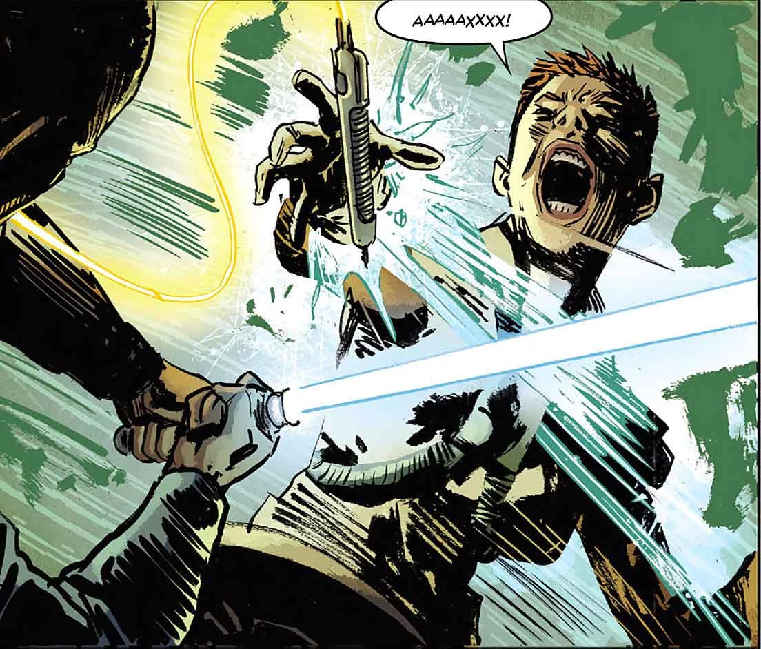 Джао тем временем продолжал сражаться с охотницей и почти победил её, но она швырнула ему под ноги термальный детонатор. Джао удалось отпрыгнуть, но взрыв оглушил его.[3]