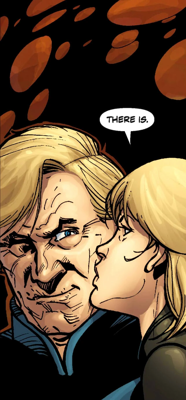 Кэй Галфридиан целует адмирала Билсму в щёку в знак благодарности