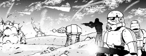 Многие пехотинцы Империи, потрясённые крушением звёздных разрушителей, оставляли свои позиции прямо в разгар боя. Так, в частности, поступили штурмовики Корлак и Терекс, убившие своего капрала и скрывшиеся в песках[24].