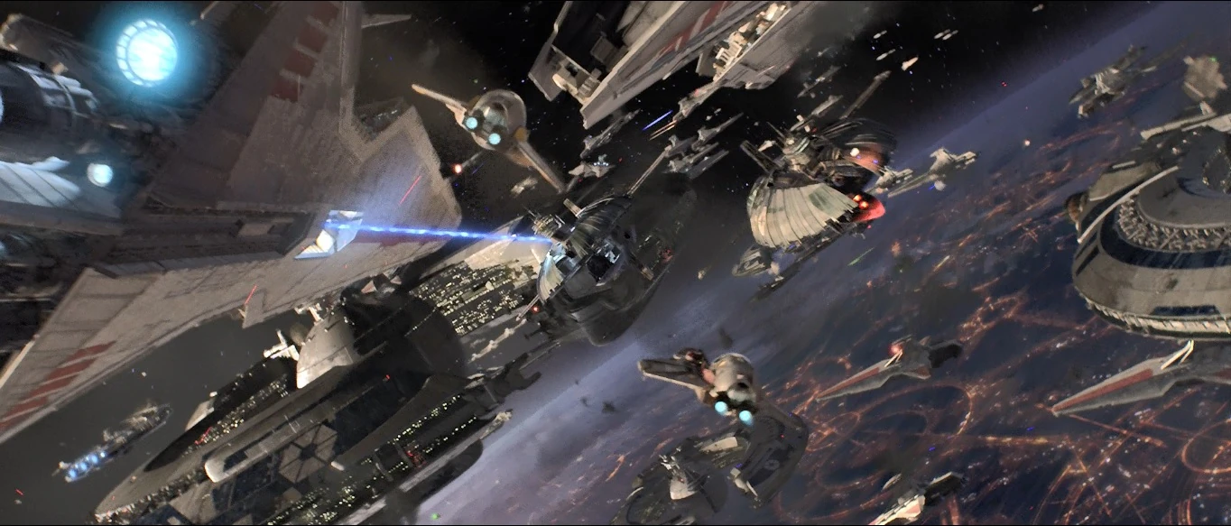- «Вот в чем проблема со сражениями в таких местах, как Корусант. Сложная, плотная инфраструктура которую легко вывести из строя — миллиарды испуганных людей, спасающихся на спидерах, и забитые воздушные коридоры, потому что повисла система автонавигации; пожары, рухнувшие здания, нарушенное водоснабжение — дальше можешь сам дописать. Смотри на это, как на помощь нашим парням, чтобы те не беспокоились за гражданских и делали свою работу — убивали сепов».