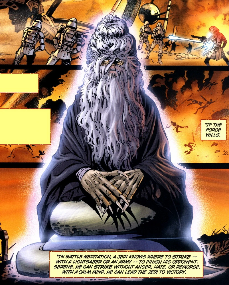- «Когда джедай создаёт мысленный образ исхода битвы, он влияет на ткань Силы, в которую вплетаются все события».
