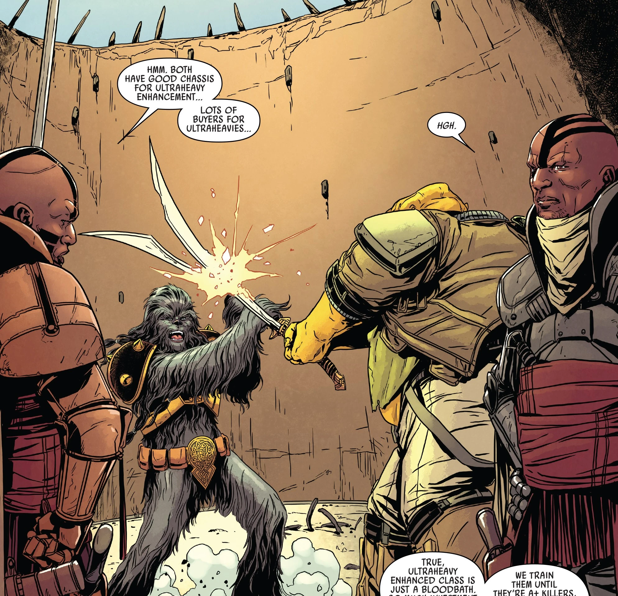 - «Всё на моей родной планете Чагар IX крутилось вокруг бойцовских ям. Богатые сидели на трибунах, а бедные сражались в ямах».