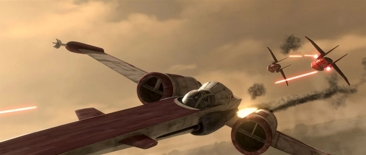 Бородавочник пытается убежать от дроидов-истребителей над Фелуцией