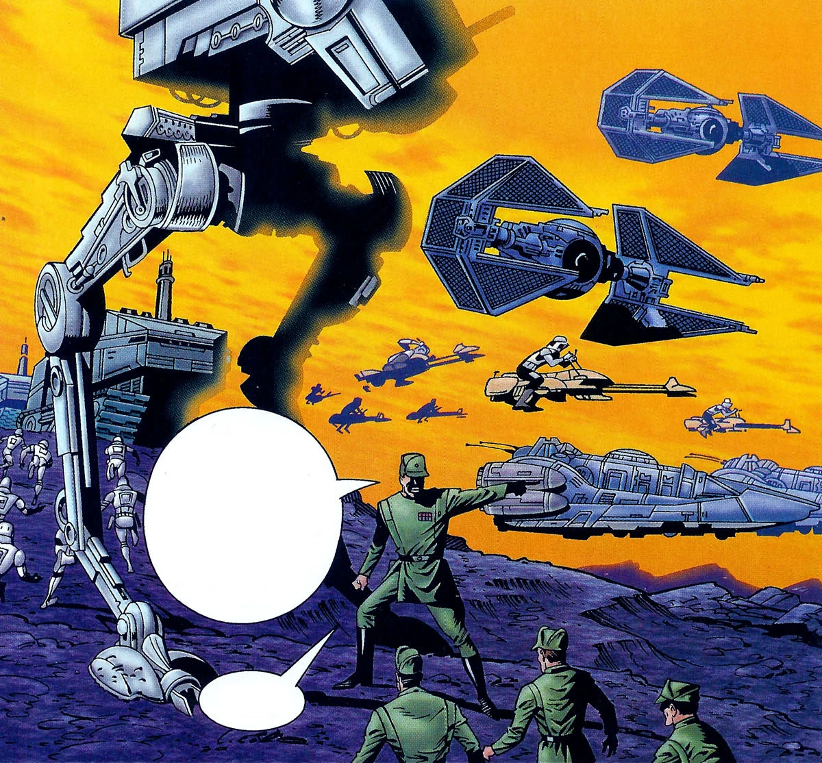 Бронемашина «Колесница» впервые появилась в романе Тимоти Зана «Наследник Империи» (1991). В одноимённом комиксе и комиксе «Последний приказ» «Колесница» изображена как бронемашина с открытым верхом и направляющими штангами, очень похожая на транспорт штурмовиков, тогда как в большинстве других источников это закрытая машина.