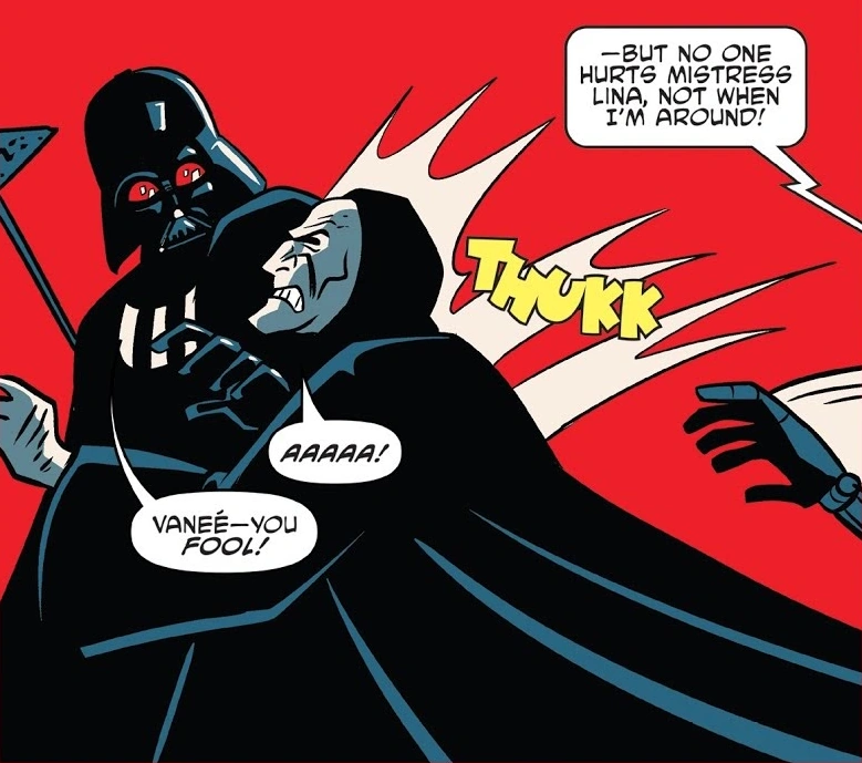 Служитель в восторге отметил, что Вейдер вернулся. Лина попыталась сказать ему, что Вейдер не вернётся, после чего пары добрались до неё. Приняв роль Вейдера, Лина потребовала своего освобождения. Вани занервничал и освободил Лину, после чего спросил об ужасе, который они навлекут на галактику. Лина, всё ещё считающая себя Дартом Вейдером, сказала ему, что сначала им нужно будет позаботиться о пленниках. Она освободила всех своих товарищей и сказала слуге, что он сошёл с ума за эти годы, и что его господин, который, казалось бы, воскрес из мертвых, — не более чем иллюзия. Майло толкнул Вани на стул, поймав его в ловушку, после чего все сбежали из замка. Оставшись один, Вани заявил иллюзии, что хочет освободится, на что «Вейдер» ответил, что это невозможно и теперь они будут вместе на всю вечность. После этого Вани судорожно закричал в попытках освободиться[18].