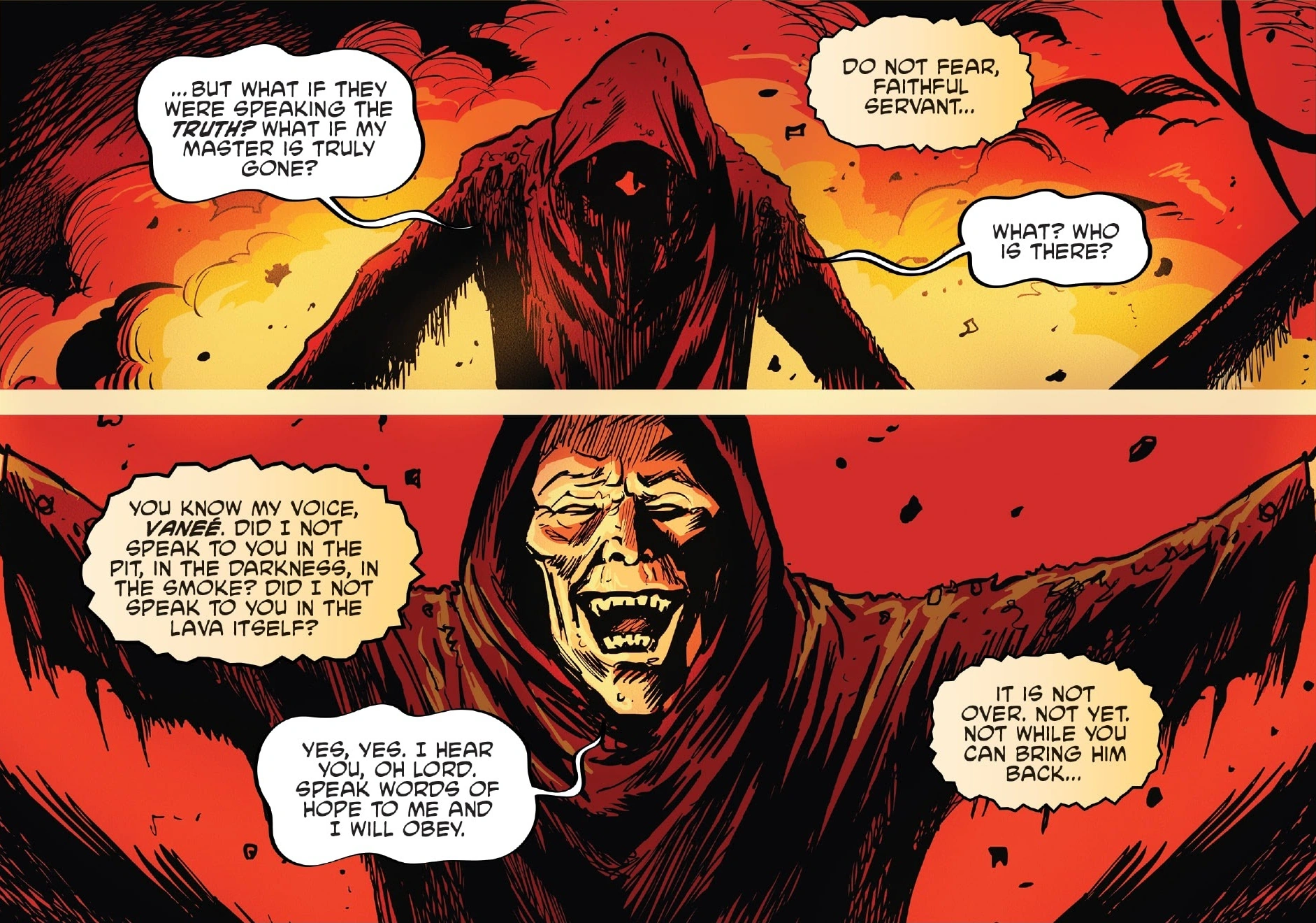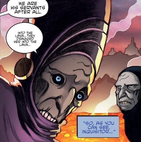 Пока служитель готовил ритуал, Лина заявила, что Дарт Вейдер мёртв, на что Вани ответил, что, поскольку они были там, когда он погиб, они будут там, когда он снова воскреснет. При этом Вани вслух заявил, что слышит голос своего хозяина. Затем он сказал своему хозяину, что выпустит пары так, как он его этому научил. Лавовые пары поднимались из ямы перед командой, Лина закричала, что это чистое безумие. Вани сказал своему хозяину, что девушка сомневается в нём, но уже скоро она узрит его истинное могущество, когда пары окутают её. Вани объявил о возрождении Вейдера, после чего вновь услышал голос ситха, сказавшего, что он ожил, поскольку находился в разуме пленников[18].