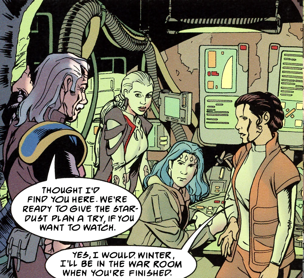 Винтер присутствовала на инструктаже, на котором также была Танда Марелл, известная также как воровка Томбат. Винтер выразила недовольство тем, что на Марелл был кулон, который, как она считала, был семейной реликвией Дома Органа. Однако через несколько дней после того, как Марелл отбыла, принцесса Лея Органа появилась на людях в этом кулоне[18].
