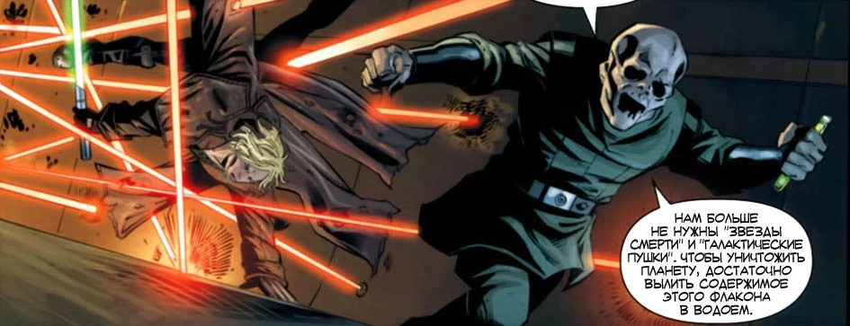 - «Нам больше не нужны "Звёзды смерти" и "Галактические пушки". Чтобы уничтожить планету, достаточно вылить содержимое этого флакона в водоём».