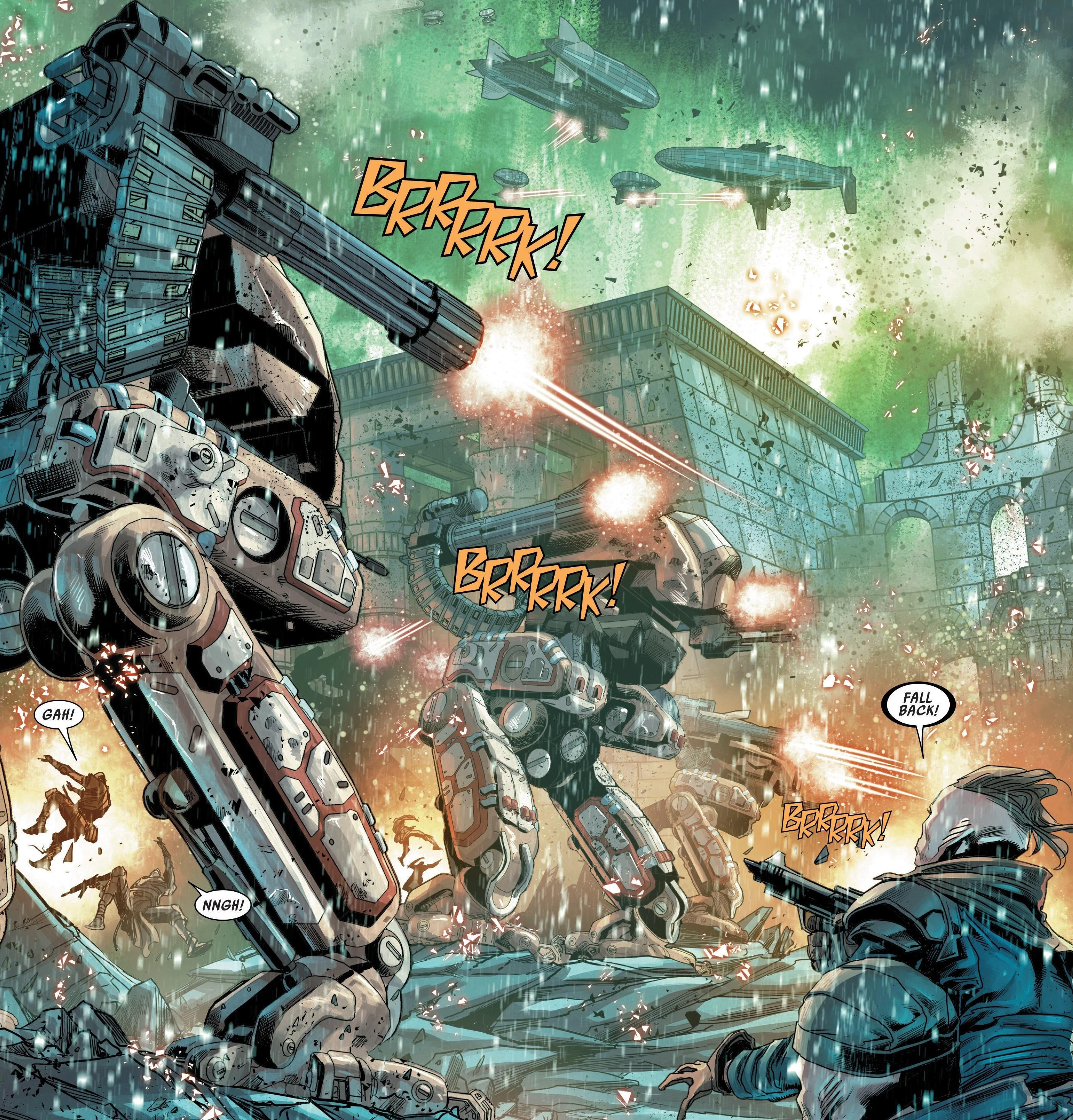 Спустя много поколений сражавшихся планета стала непригодна для жизни. Обломки звёздных кораблей и космических станций заполнили орбитальное пространство, сделав невозможной навигацию в космосе, а поверхность планеты покрыл ядовитый газ. Города оказались разрушены и заброшены, а члены враждующих фракций перебрались в тайные базы в горных районах планеты, оставив заражённые территории новым формам жизни. Перестав производить новые технологии, обе группировки в конце концов опустились до войны на аэростатах.[5] Их огромные боевые роботы вышли из строя, а умения починить их были утрачены.[6]