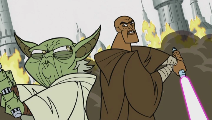 Йода и Мейс Винду продолжают сражение с армией дроидов на Корусанте. Они задаются вопросом, с какой целью Конфедерация независимых систем вторглась на планету, если до сих пор не атаковала Храм джедаев или Здание Сената, и осознают, что враг отвлекал их внимание от своей истинной цели — Палпатина. Винду запрыгивает в пролетающий мимо LAAT/i и приказывает пилоту разворачиваться.