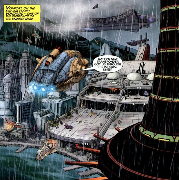 Вонпорт (англ. Vonport) — крупный город-космопорт на Вондарке. В 19 ДБЯ команда «Ухумеля» проникла на местный имперский пост охраны в поисках информации о Дассе Дженнире.