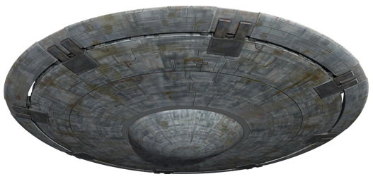 Фрегат перемещался за счёт постоянного вращения вокруг своей оси[7], издавая при этом сильный гул. В нижней части «тарелки» находилась куполообразная надстройка, где располагался ангар[2], вмещавший 6 шаттлов типа «Пылающая звезда»[1]. Купол раскрывался, позволяя шаттлам покинуть ангар[2].