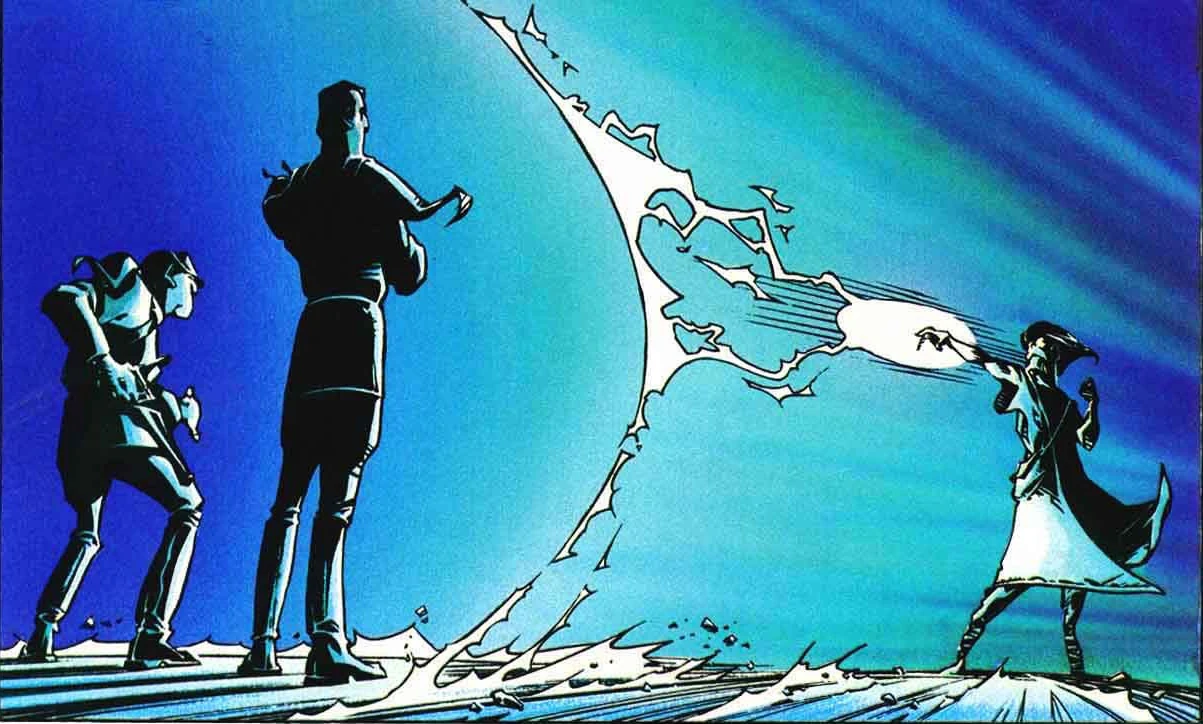 Перед тем, как прибыли джедаи Осколок был атакован юужань-вонгами. Имперская разведка считала, что вонги двигаются в сторону Нирауана, но они ошибались. Истинной целью надвигающихся сил противника был Бастион. Пеллеон попытался защитить планету, но имперский флот был атакован тысячами гратчинов. Бастион пришлось эвакуировать, а тысячи имперских граждан отправились на Муунилинст. Казалось бы, обороняющиеся в системе Бастиона звёздные разрушители Империи: «Химера» и сопровождающий её корабль, «Превосходящий» были тяжело повреждены. К счастью для имперцев, именно в этот момент в систему вошёл корабль джедаев. Сообщив о местонахождении йаммоска, джедаи переговорили с Гиладом и по его совету ушли к Малой Яге. Именно там они встретились с капитаном Ариен Йедж, одним из наиболее лояльных Пеллеону офицеров.