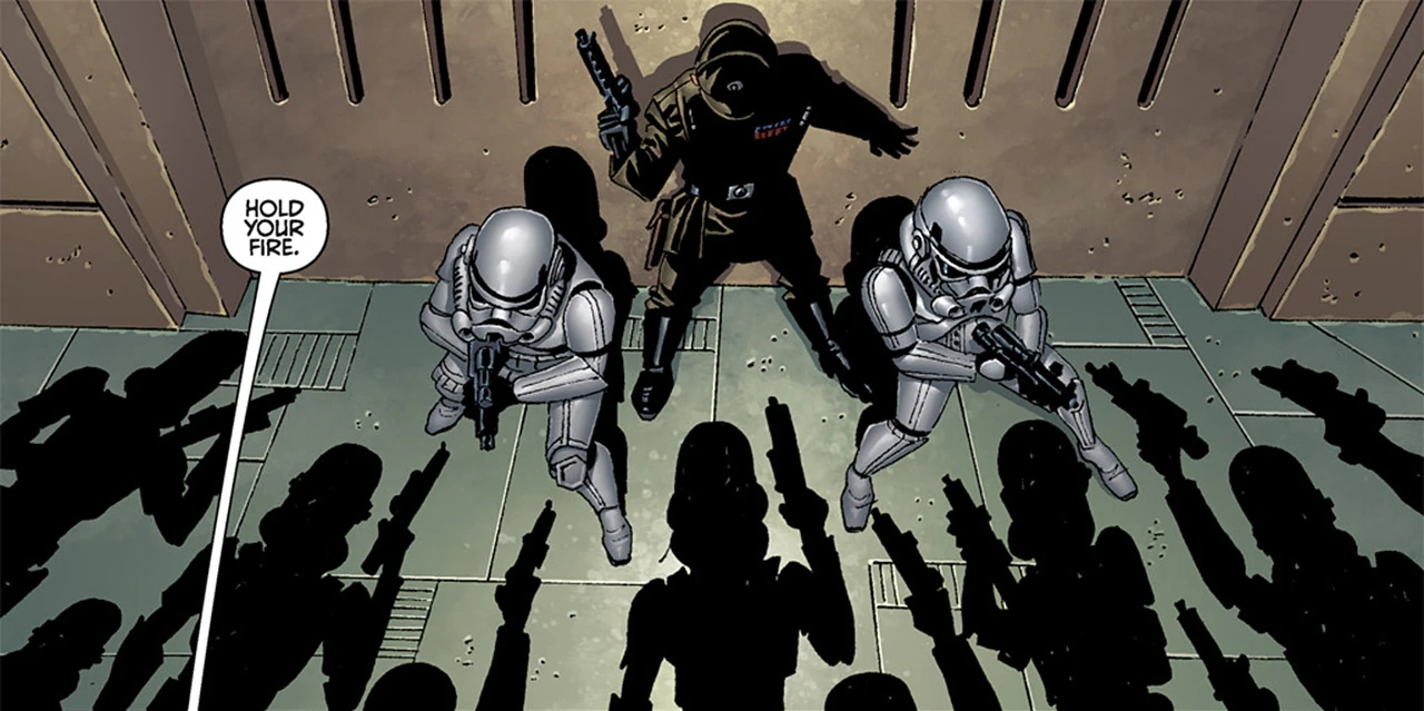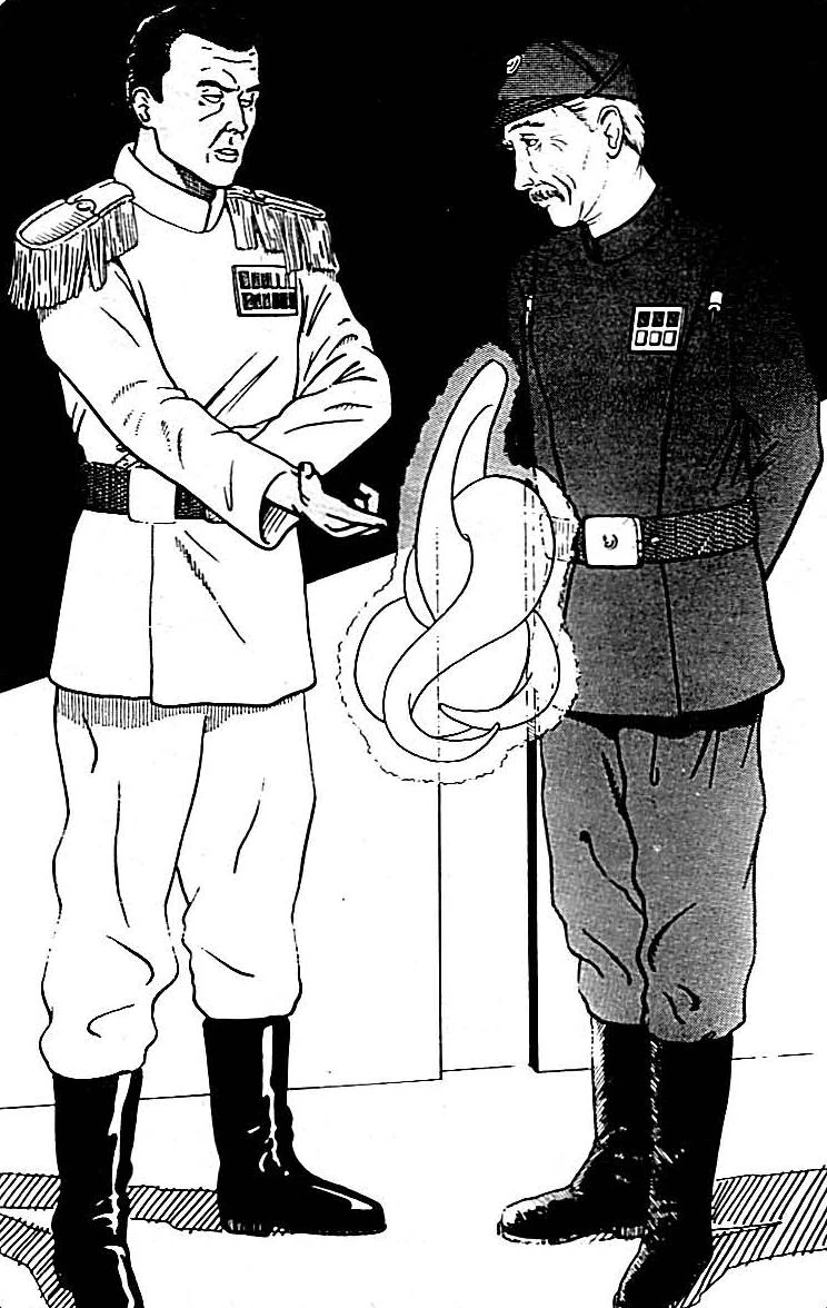 - «Я — гранд-адмирал Траун. Я был далеко, но теперь вернулся. Я немало знаю о случившемся. Но вы заполните пробелы, когда я поднимусь на борт. Поздравляю, капитан, Империя возродится вновь».
