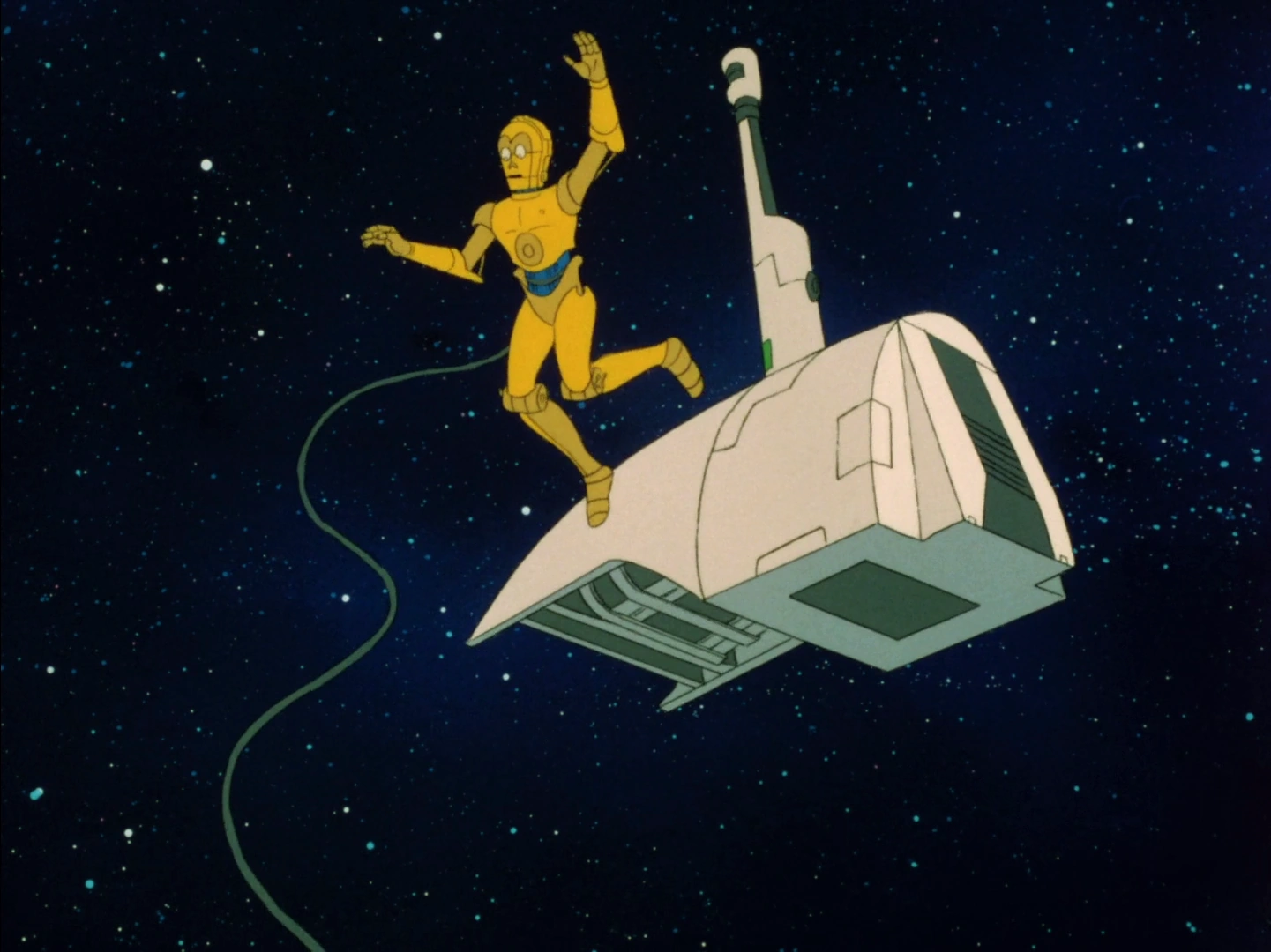 C-3PO возле гипердвигателя корабля типа «Звёздный бегун»