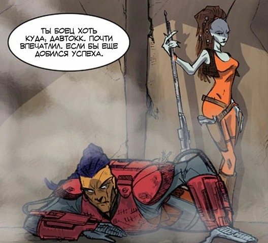 - Давтокк: «Дальше я справлюсь. С меня причитается, дроид. [вынимает мешочек с деньгами] А это твоему хозяину».