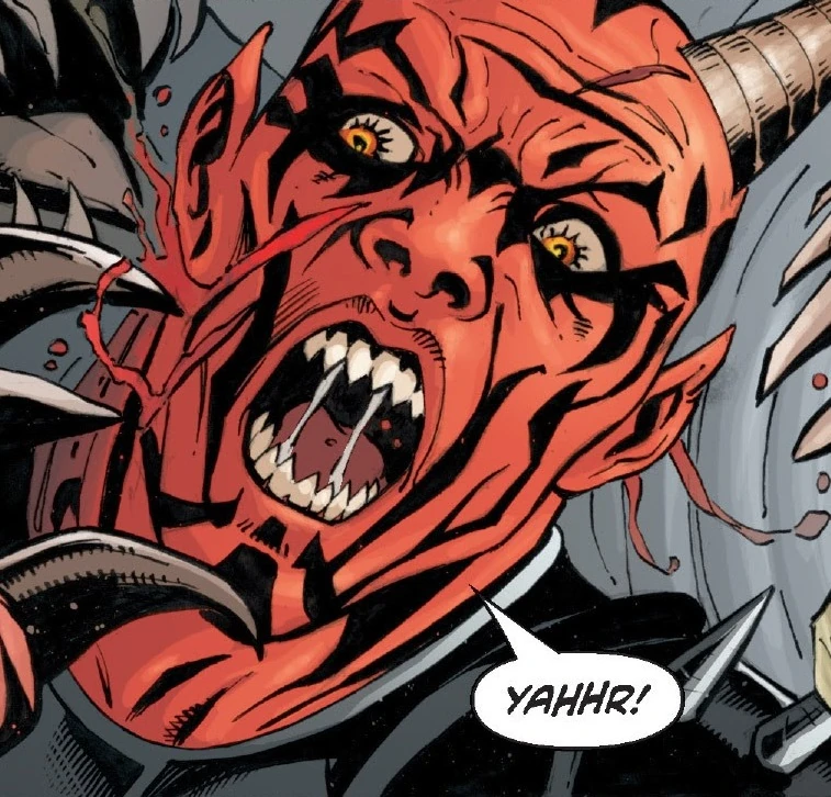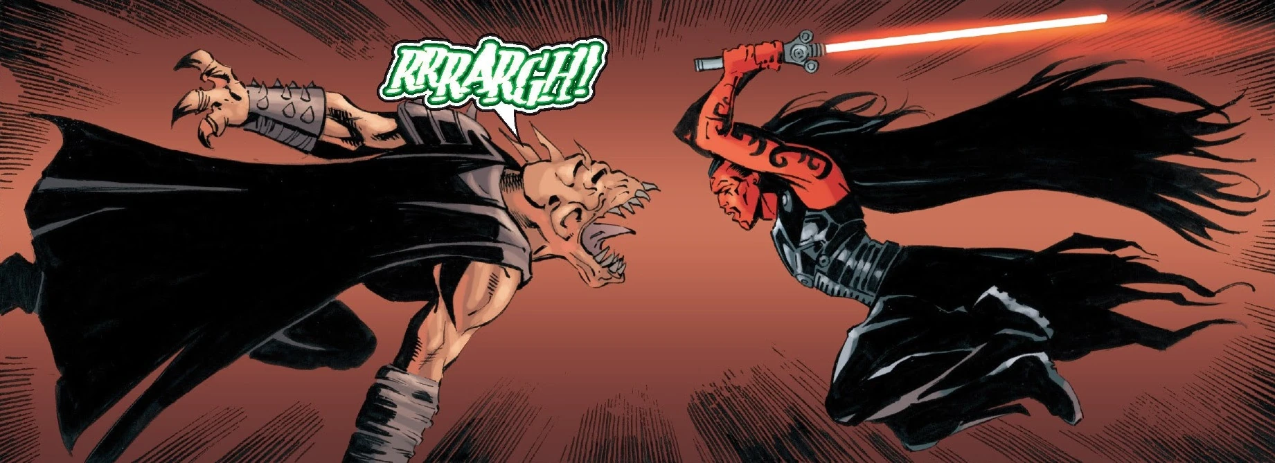 Превратившийся в ракгула Рив нападет на Дарта Страйфа