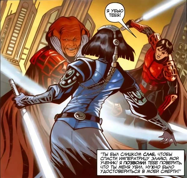 - «Верните мастера Драко в бакта-камеру. Мы не можем позволить ему умереть до того, как он выдаст нам секреты. А он их выдаст. В бытность свою Имперским рыцарем я был его учителем, и я знаю слабые места бывшего ученика».