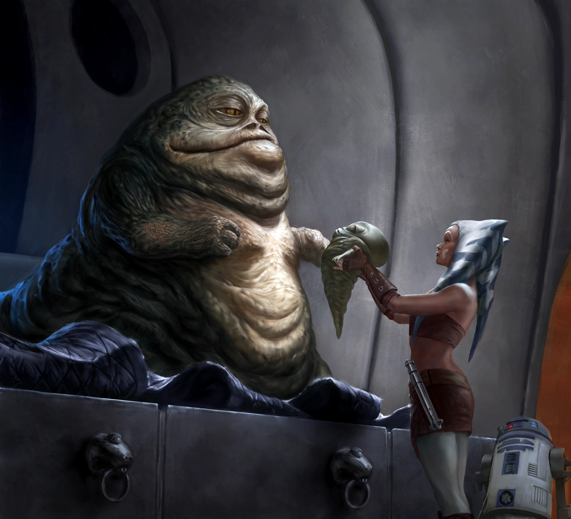 В 22 ДБЯ мастер-джедай Оби-Ван Кеноби отправился во дворец Джаббы, чтобы заверить Джаббу, что Галактическая Республика спасёт его сына Ротту, и чтобы получить обещание от хаттов о безопасном проходе республиканских кораблей через территории Внешнего Кольца. После спасения Ротты от сил сепаратистов рыцарь-джедай Энакин Скайуокер и его падаван Асока Тано вернули его во дворец Джаббы. Поскольку им не удалось доставить похитителя, Джабба также хотел казнить Скайуокера и Тано. Однако сенатору Падме Амидале удалось спасти жизни своих товарищей, разоблачив дядю Джаббы Зиро как зачинщика похищения Ротты[6].