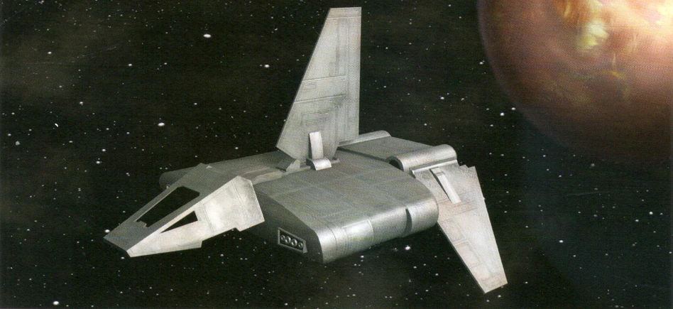 Выглядит он, как стандартный «лямбда», корабль, оперенный неподвижным крылом сверху и двумя складными нижними крыльями. Он имеет больший грузовой отсек и более серьезную защиту и вооружение, позволяющие вступать в бой.