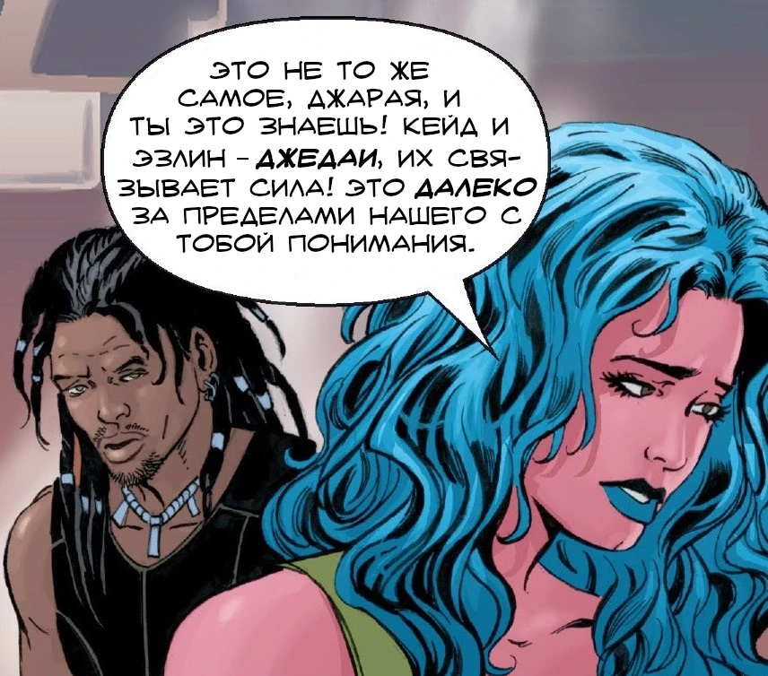 - Джарая Син: «Надо попытаться. Кейд и Делия — мой брат и мой друг. Немного таких найдётся в галактике».