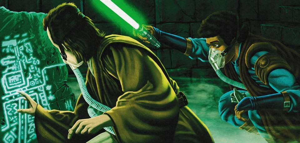 Джедай-археолог и его ассистент изучают надписи в гробнице ситхов.