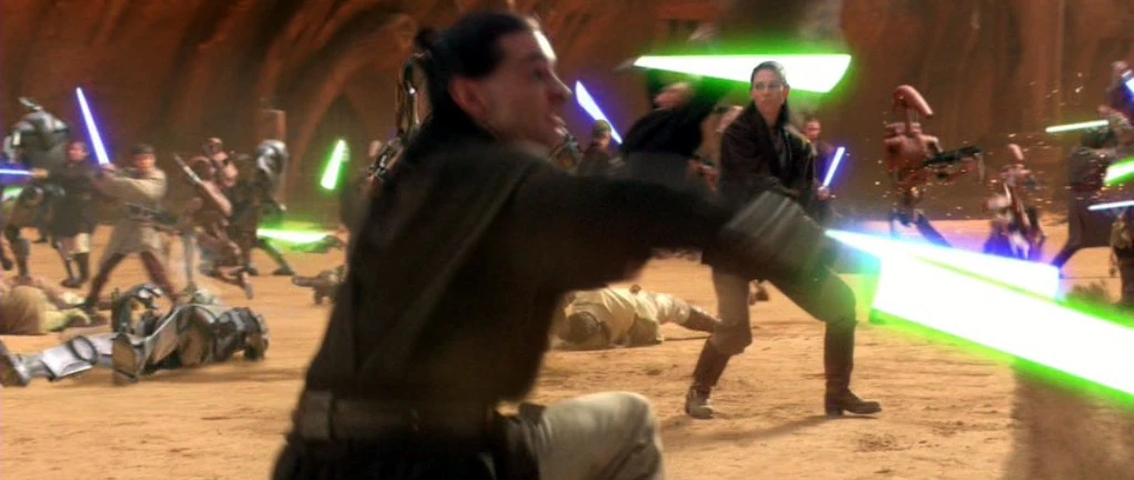 Данва использует Форму VI во время битвы на Джеонозисе[3].
