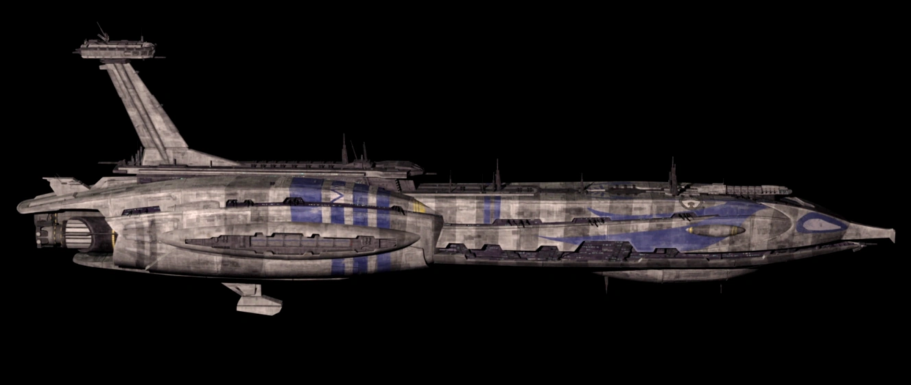 - «Анализ данных, полученных от системы "свой-чужой" командного центра, подтверждает, что этот крупный корабль является меньшей моделью сепаратистского авианесущего крейсера типа «Провидение», модифицированного модулями, снятыми с разрушителей и фрегатов КНС. Корабли данного типа сделали себе имя во время войны, ставя помехи, блокируя передачу сигналов и уничтожая передатчики Голонета».