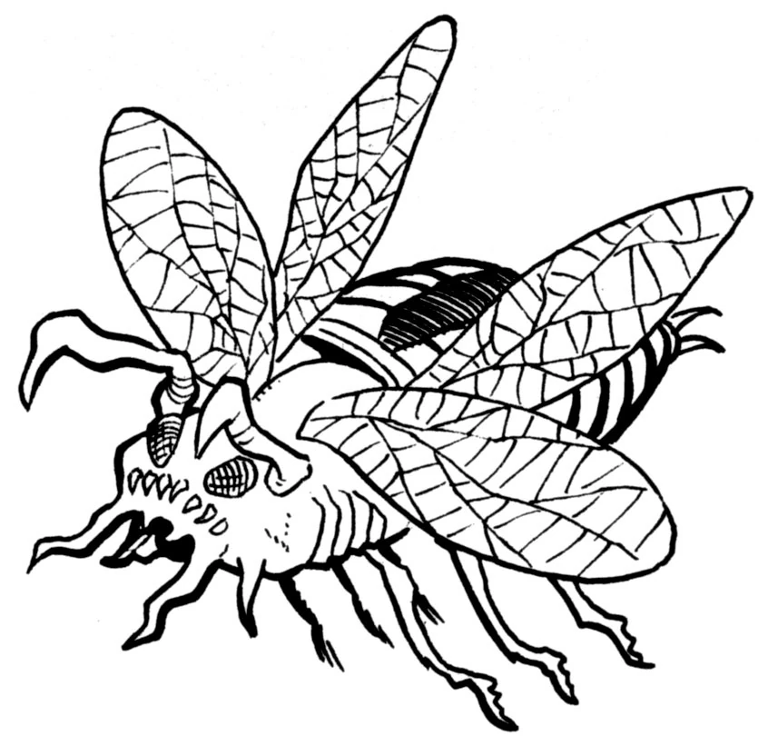 Жуки-пираньи были плотоядными насекомыми с яркой раскраской туловища, длина которого достигала 3 см, четырьмя спаренными крыльями, и тремя парами острых, быстрых жвал. Именно последняя особенность делала их очень опасными животными. Жук мог работать как отдельной парой, так и всеми тремя одновременно.[2]