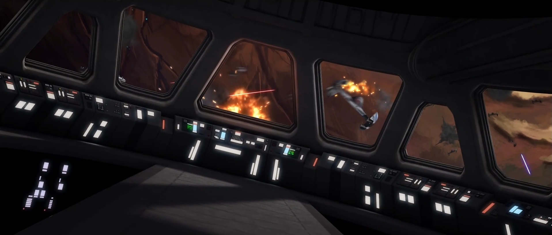 Во время первой попытки прорыва блокады подбитый дроид-стервятник врезался в мостик «Защитника». Точно так же истребитель A-wing врезался в мостик звёздного суперрразрушителя «Палача» в кинофильме «Звёздные войны. Эпизод VI: Возвращение джедая». Было ли это повторение отсылкой или нет, неизвестно.