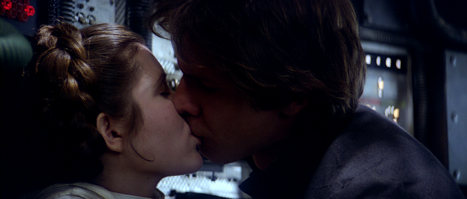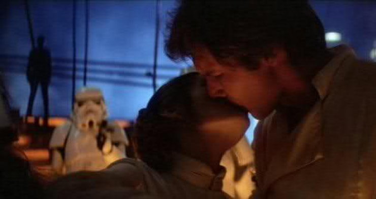 В это время на «Соколе» Лея пытается ремонтировать корабль, но у неё не очень получается. Хан подходит к принцессе и говорит, что девушке нравятся негодяи, потому что раньше она их не встречала, а когда та пытается возразить, целует её. Их поцелуй прерывает явившийся C-3PO.