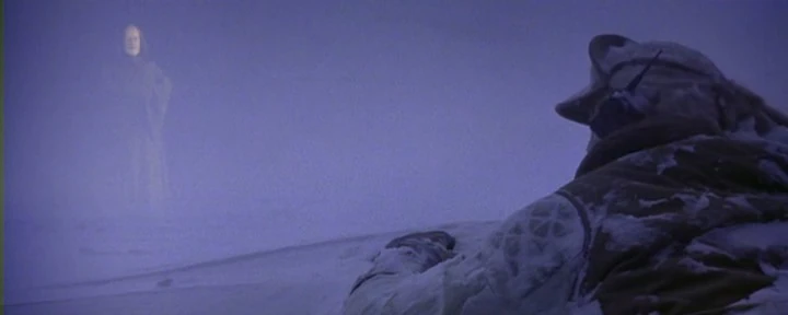 Люк пытается дойти до базы пешком, но выбивается из сил и падает в снег. Неожиданно он видит перед собой духПризрак СилыПризрак Силы/Канон Оби-Вана КенобиОби-Ван КенобиОби-Ван Кеноби/Канон. Бен велит ему лететь на планету ДагобаДагобаДагоба/Канон, где он сможет найти гранд-мастераГранд-мастерГранд-мастер/Канон джедаяДжедайДжедай/Канон ЙодуЙодаЙода/Канон. Когда призрак исчезает, из-за снежной завесы появляется Хан. Он находит Люка в полубессознательном состоянии, бессвязно бормочущего про Бена, Йоду и Дагоба. От невыносимого холода и пронизывающего ветра таунтаун Хана падает замертво. Чтобы согреть Люка, Хан вспарывает световым мечом живот мертвого животного и запихивает Люка внутрь, а затем начинает готовить убежище, чтобы переждать ночь. Из-за того, что аэроспидерыАэроспидер T-47Аэроспидер T-47/Канон повстанцев не были адаптированы под суровые ночные условия Хота, спасательная операция начинается только с восходом солнца.