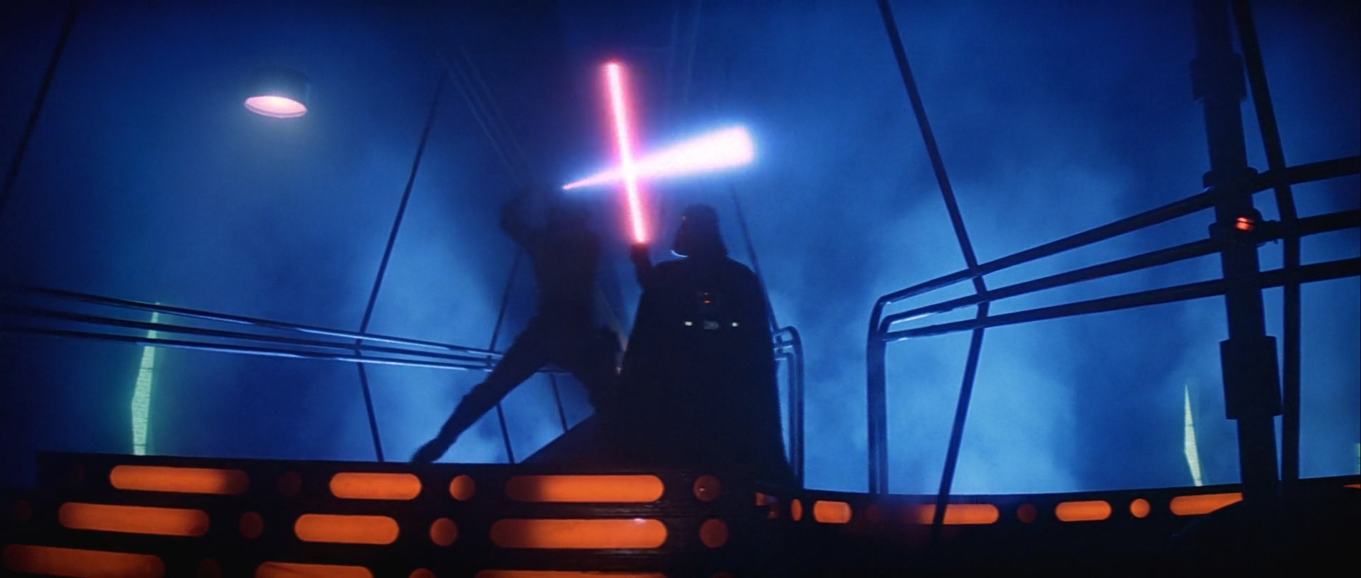 Дуэль между Дартом Вейдером и Люком Скайуокером.