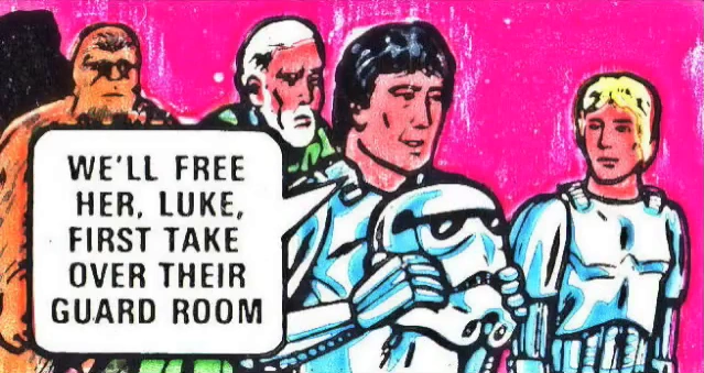 - После того, как «Тысячелетний сокол» оказывается на «Звезде Смерти», Дарт Вейдер приказывает штурмовику разобрать C-3PO и R2-D2, но штурмовиком оказываются Люк Скайуокер; это позводяет провести дроидов через охрану.