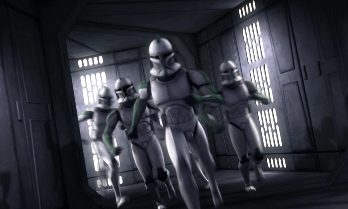 Когда Зелёная рота вместе с пленённым вице-королём разместилась на «Спокойствии» и направилась на Корусант, корабль Республики атаковали дроиды-истребители и абордажные корабли. Гри отправил в бой против дроидов Зелёную роту, но солдаты Республики быстро были уничтожены вражеским огнём. Зелёный-лидер (командир роты) успел отправить Гри сообщение о наступлении противника перед своей собственной смертью от рук одного из супердроидов. Последний выживший клон был обезглавлен Асажж Вентресс, пытаясь сообщить командованию о прибытии ученицы графа Дуку. В это время шесть других солдат роты сражались на дроидами на тюремном уровне. Трое из них погибли в отважной попытке защитить крейсер, но остальные были спасены прибывшими генералом-джедаем Луминарой Ундули и Гри, которые нанесли поражение вражеским дроидам. Однако Вентресс удалось освободить Ганрея и сбежать со «Спокойствия», предварительно убив двух солдат-клонов, охранявших спасательные капсулы корабля[2].