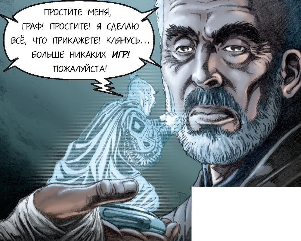 - «Простите меня, граф! Простите! Я сделаю всё, что вы прикажете! Клянусь... больше никаких игр! Пожалуйста!»