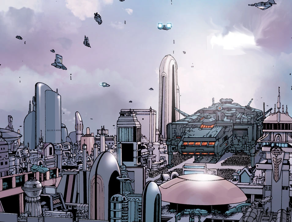 Пока республиканская и имперская делегации созывались на Альдераан для мирных переговоров, лояльная к Империи мандалорская наёмница Шей Визла прилетела на столицу Республики Корусант и деактивировала планетарный щит. Это позволило лорду ситхов Дарту Малгусу с пятьюдесятью воинами-ситхами вторгнуться в Храм джедаев и взять здание в осаду. Ситхи и защитники храма, которых возглавил мастер-джедай Вен Зеллоу, вступили в жестокую битву, но захватчики одержали победу. После этого флот ситхских кораблей под командованием Дарта Анграла начал бомбардировку города и высадку своих войск на поверхность. Выжившие джедаи и республиканские солдаты пытались отстоять столицу, но потерпели поражение. К тому времени, как битва закончилась, Храм джедаев превратился в руины, а шесть членов Высшего совета джедаев и Верховный Канцлер Республики Берукен были убиты. Вся связь с Корусантом была прервана, так что галактике оставалось только гадать о том, какая резня происходит на поверхности столичного мира.