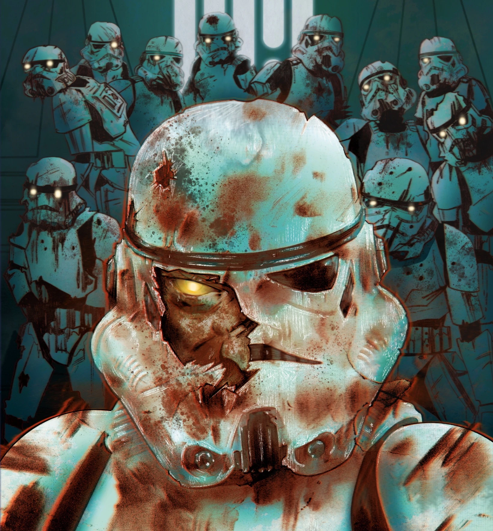 Отряд имперских солдат, окружённый заражёнными имперскими офицерами и штурмовиками.