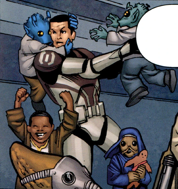 На Корусанте выяснилось, что найденная Взломщиком плата была произведена на планете Киначи, и для выяснения ситуации на планету был направлен мастер-джедай Ринг-Сол Эмбас, решивший включить в свой отряд клонов, нашедших плату. Когда все участники операции уже погрузились в транспортный корабль, к нему подбежал синекожий мальчик-джедай и с помощью обмана разума заставил Взломщика, закрывавшего люк, пропустить его на корабль и забыть о его присутствии.