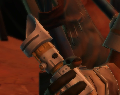 Будучи учеником Бенгела Морра, Каллеф владел световым мечом с синим клинком, который он спроектировал на основе оружия учителя. Бывший учитель Морра, Оргус Дин, обратил внимание на это сходство, однако не смог вспомнить, кому именно подражал Каллеф[2].