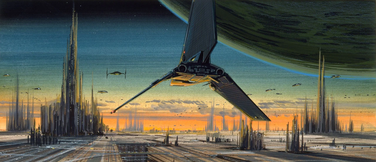 Столица Империи, полностью покрытая городом, впервые появляется в синопсисе фильма «Звёздные войны» в начале мая 1973 года под названием Альдераан (позднее название было передано родной планетеЛеи Органы). Согласно сюжету, во многом заимствованного Джорджем Лукасом из фильма «Скрытая крепость» Акиры Куросавы, на эту планету переводят принцессу, пленённую на запретной луне Явин. Вероятным источником заимствования является «город-планета» Трентор Айзека Азимова.