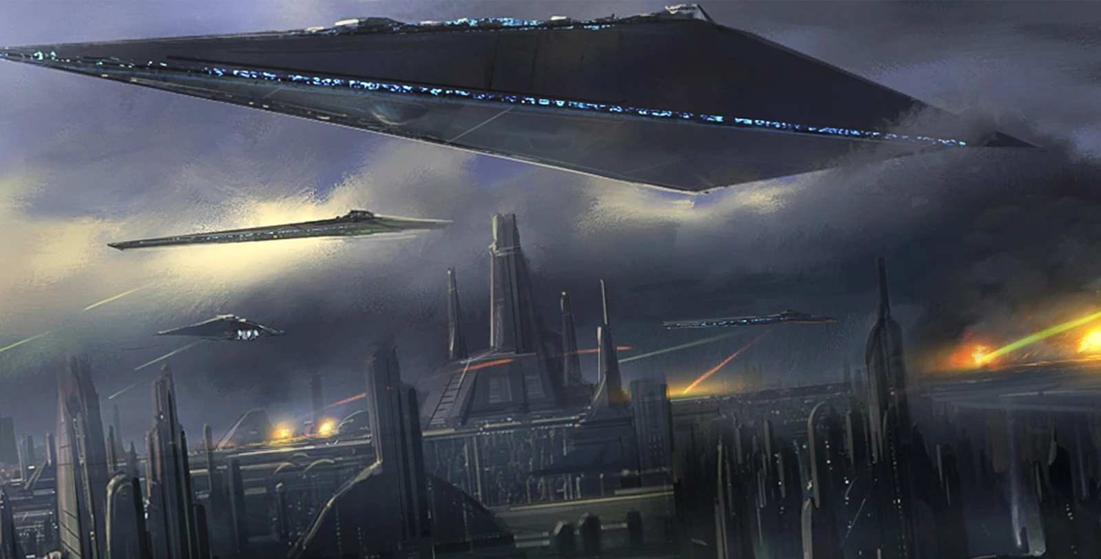 «В моих снах я вижу… Корусант, сотрясаемый орбитальными бомбардировками с огромных кораблей невероятного дизайна. Я вижу, как Корусант, источник галактической культуры, превращается в джунгли гораздо более враждебные и чуждые, чем джунгли Харрун-Кэла. Я вижу конец цивилизации».